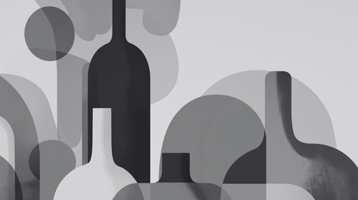 WonderMuralVår svart-hvite fototapet har et moderne og abstrakt design, med flaskesilhuetter som stiger over gradient geometriske former. Nyansene av grått og...