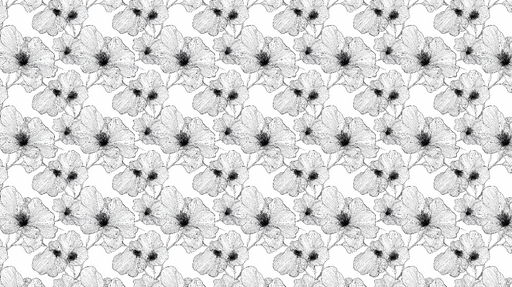 WonderMuralSort og hvit blomsterillustrasjon Dette tapetet har store blomster tegnet i svart og hvitt, med gjennomsiktige kronblader som legger til en følelse...