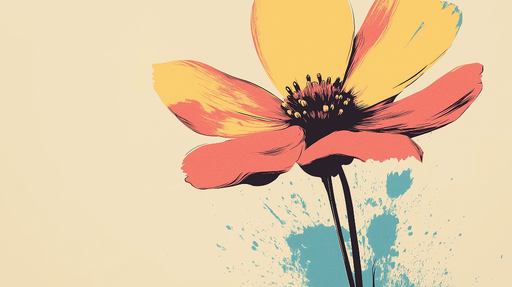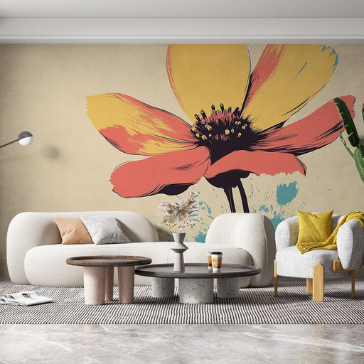 WonderMuralDette fengslende fototapetet viser en kunstnerisk illustrasjon av en blomst med gule og rosa kronblader, omgitt av levende malestrøk som bringer en...