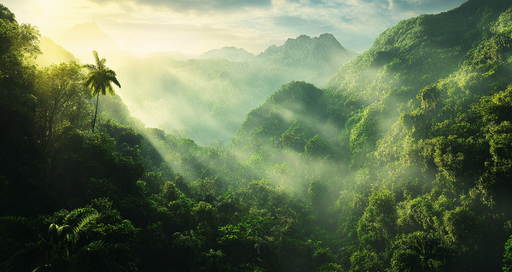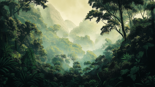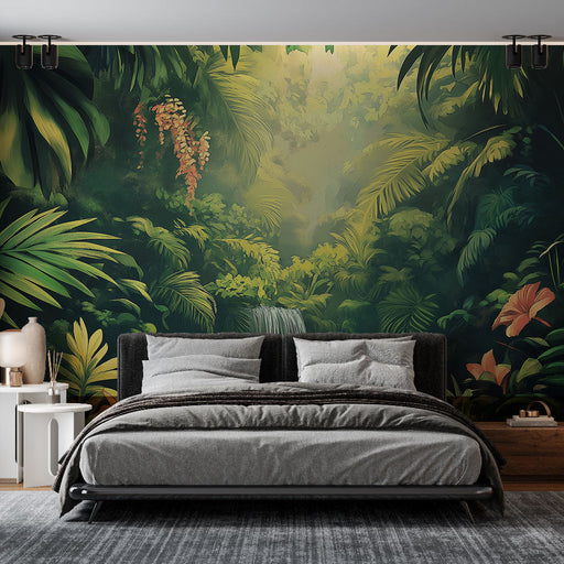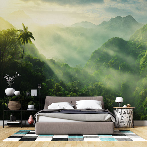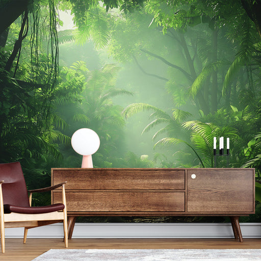 WonderMuralOppdag vår Tapete inspirert av tropiske jungler, som skildrer et frodig landskap der lyset filtrerer gjennom den lette tåken. Nyansene av grønt rep...