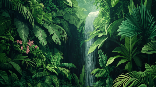 WonderMuralVår fototapet har et levende jungellandskap, der naturens skjønnhet uttrykkes gjennom tett vegetasjon og en mild foss. De rike grønne tonene, bland...