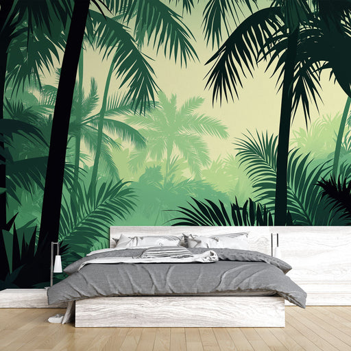 WonderMuralDette mural tapetet fremkaller en tett tropisk jungel, fylt med majestetiske palmetrær og frodig løvverk. De forskjellige grønntonene skaper en eng...