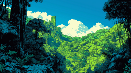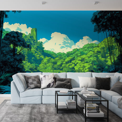 WonderMuralDette fengslende fototapetet har en jungellandskap rik på nyanser av grønt, der den frodige vegetasjonen står i kontrast til en lys blå himmel og m...