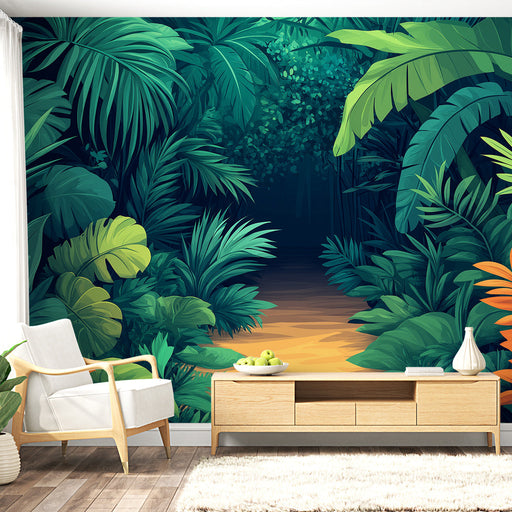 WonderMuralDenne fototapeten fremkaller en dyp fordypning i jungelen, med en delikat sti som snor seg gjennom tett vegetasjon. De varierte nyansene av grønt o...