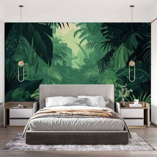 WonderMuralDette muraltapetet fremkaller en levende jungel, med tette mønstre av grønne blader og palmetrær. De rike grønne nyansene skaper en beroligende atm...