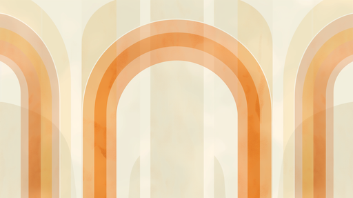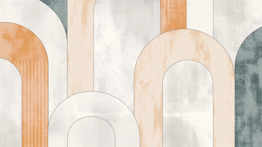 WonderMuralDenne fototapeten har et mønster av retro arkader i myke, falmede farger. Buede linjer veksler mellom oransje, beige og blågrå nyanser, og skaper e...