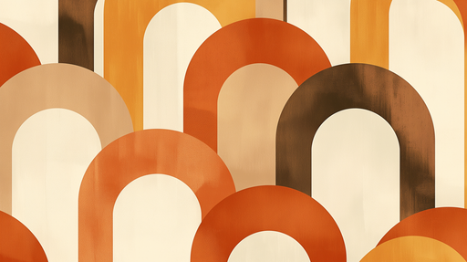 WonderMuralDenne fototapeten har et retro-mønster med buer i nyanser av brent oransje, jordbrunt og myk beige. De flytende linjene og generøse kurvene gir en ...