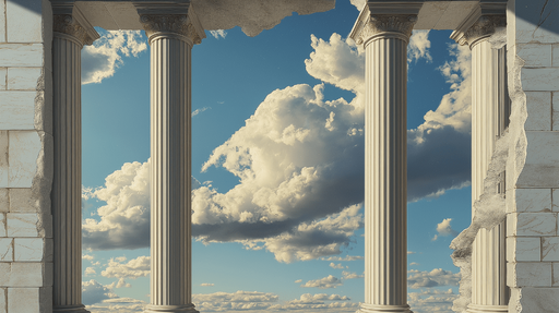 WonderMuralOppdag vår fototapet med majestetiske søyler som reiser seg mot en blå himmel prikket med skyer. Dette nøye utformede mønsteret vekker en følelse a...