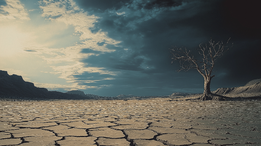Vis fulle detaljerFototapet tørt landskap | Sprukket jord under en dramatisk himmel