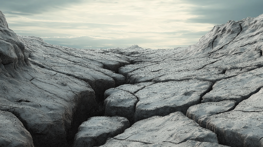 WonderMuralDenne fototapeten viser et karrig landskap med sprukne jordoverflater, som skaper en spektakulær og dramatisk atmosfære. Nyansene av grått og beige...