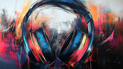 Vis fulle detaljerFototapet kunstneriske hodetelefoner | Fargerikt og moderne design for en oppslukende opplevelse