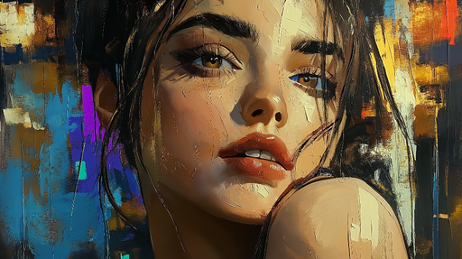 WonderMuralDette fengslende fototapetet har et kunstnerisk portrett med levende farger, og skaper en dynamisk og moderne atmosfære. De hevede maleberøringene ...
