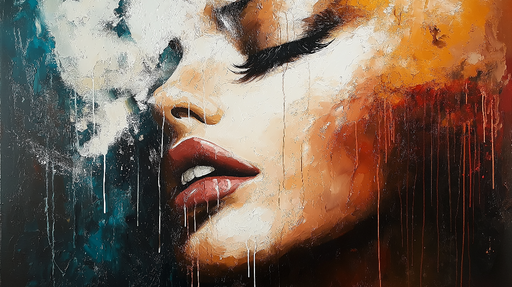 WonderMuralDette fengslende fototapetet fremhever et kvinnelig portrett malt med berøringer av sterke farger, og skaper en kunstnerisk og uttrykksfull atmosfæ...