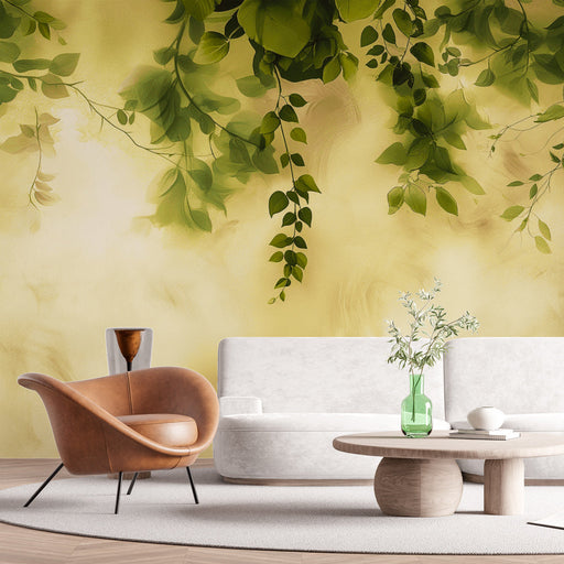 WonderMuralVår tapet fremhever et delikat motiv av ginkgoblader i myke toner av grønt, gull og krem, og skaper en naturlig og beroligende atmosfære. De stilis...