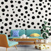 Vår fototapet består av et attraktivt svart prikkemønster på en lys bakgrunn, som gir et snev av modernitet og energi til rommet ditt. Variasjonen i prikkestørrelser skaper en visuell dynamikk som fanger oppmerksomheten samtidig som den forblir elegant.