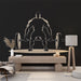 Denne fototapeten gir en dynamisk touch til rommet ditt med en stilisert fremstilling av en vektløfter som løfter en vektstang. Kontrasten mellom den muskuløse silhuetten og den mørke bakgrunnen skaper en slående effekt som er ideell for et treningsstudio eller et treningsrom hjemme.