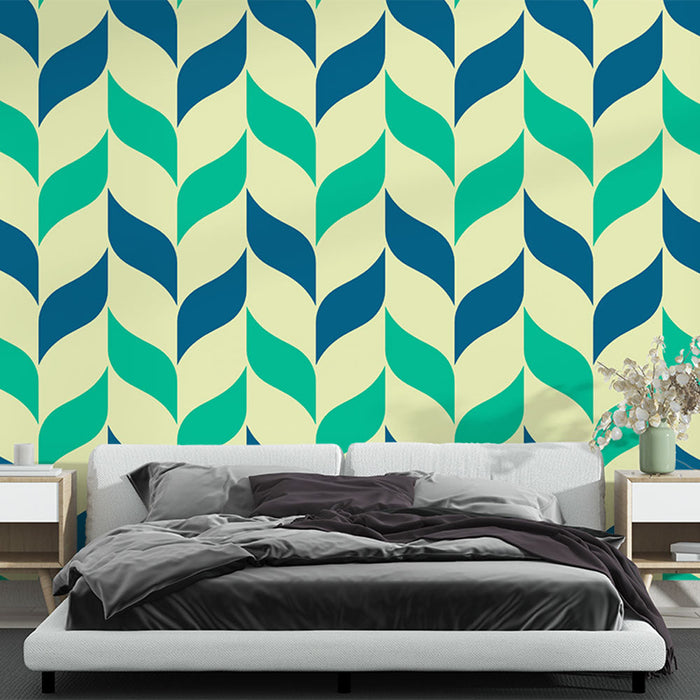 Gi liv til en moderne og dynamisk touch til interiøret ditt med vår geometriske fototapet med bølgete mønstre i blå og grønne farger. Ideell for en moderne stue eller et designer soverom, vil denne fototapeten legge til bevegelse og friskhet til ethvert rom.