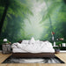 Denne fototapeten vekker den fortryllende atmosfæren av en tropisk skog, der majestetiske bregner utfolder seg under en lett tåke. De livlige grønne nyansene skaper en følelse av friskhet og mysterium, og får rommet til å gli inn i en naturlig og beroligende atmosfære.