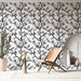 Tapeta z motywem kwiatowym | Delikatny wzór czarnych gałęzi z kwiatami na białym tle