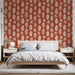 Tapeta liściowa | Białe wzory liści na czerwonym tle ziemi