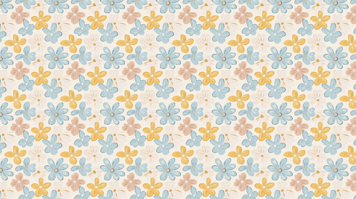 WonderMuralTa tapeta podkreśla uroczy wzór kwiatowy składający się z różowych, żółtych i niebieskich kwiatów, harmonijnie ułożonych na delikatnym kremowym tle...