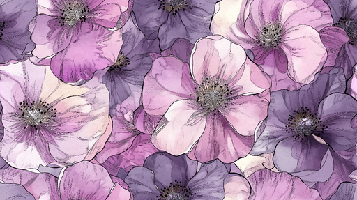 WonderMuralTa tapeta prezentuje piękny wzór różowych i lawendowych kwiatów, delikatnie przedstawionych w stylu akwarelowym. Miękkie odcienie fioletu harmonijn...