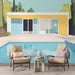 Nasza Tapeta przedstawia piękną ilustrację nowoczesnego domu przy basenie, uchwycającą istotę współczesnych projektów architektonicznych. Odcienie niebieskiego i żółtego, połączone z naturalnymi elementami, tworzą spokojną i przytulną atmosferę, idealną do wnętrza.