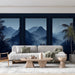 Ta imitacja tapety oferuje wspaniałą panoramę gór pokrytych mgłą, stworzoną w kojących odcieniach niebieskiego. Palmy na krawędziach dodają tropikalnego akcentu, tworząc jednocześnie spokojną i kontemplacyjną atmosferę. Różne warstwy gór dodają głębi i zachęcają do ucieczki.