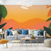 Ta tapeta wywołuje delikatną tropikalną atmosferę z wspaniałym wzorem plaży skąpanej w zachodzie słońca. Ciepłe kolory, od pastelowego pomarańczu po delikatny żółty, tworzą przyjazną i zdrową atmosferę, podczas gdy bujna roślinność otacza scenę, dodając odrobinę natury.