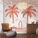 Ta tapeta przywołuje wakacje nad morzem dzięki swojemu żywemu wzorowi palm i deski surfingowej stojącej na plaży. Prostota czerwonych linii na białym tle tworzy atmosferę, która jest zarówno dynamiczna, jak i kojąca, idealna dla tych, którzy pragną wprowadzić tropikalny akcent do swojego wnętrza.