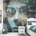 Ta imponująca tapeta ścienna przedstawia wybuchowy artystyczny portret na tle ściany o teksturze. Żywe kolory i abstrakcyjne detale tworzą atmosferę zarówno nowoczesną, jak i surową, przypominającą prace street art. Odcienie niebieskiego, czerwieni i złota harmonijnie się łączą, aby ożywić tę unikalną ilustrację.