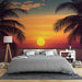 Tapeta ścienna ta przywołuje spektakularny tropikalny zachód słońca, z ciepłymi odcieniami pomarańczy i różu miesza się na niebie, tworząc przytulną i relaksującą atmosferę. Palmy stoją w sylwetkach, dodając egzotycznego akcentu, który przekształca każde pomieszczenie w prawdziwy azyl pokoju.