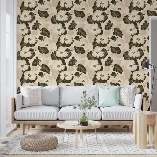 WonderMuralTa tapeta przedstawia piękny wzór kwiatowy, który łączy białe kwiaty i beżowe liście, tworząc miękką i ciepłą atmosferę. Neutralne tło podkreśla de...