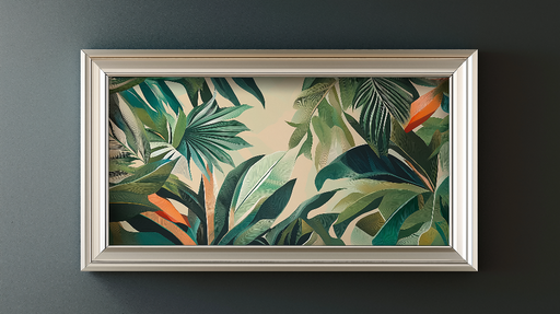 Wyświetl pełne szczegółyTapeta imitująca malarstwo | Paleta pomarańczowego i tropikalnej zieleni