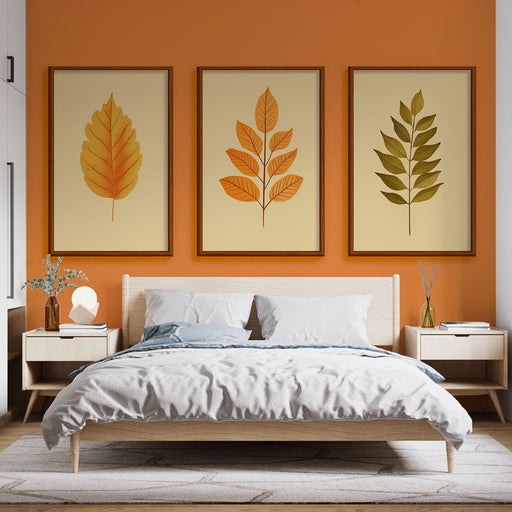 WonderMuralTa tapeta przedstawia zestaw stylizowanych wzorów liści, które ciepło przywołują jesień. Żywe odcienie pomarańczu i zieleni tworzą harmonijny kontr...