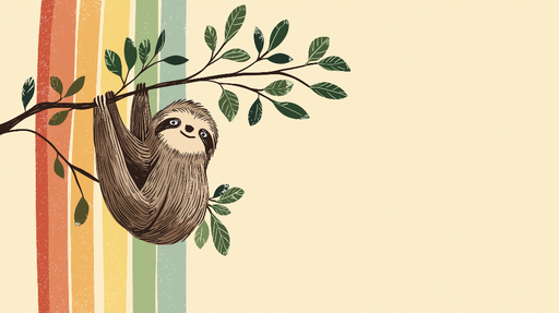 Wyświetl pełne szczegółyTapeta leniwy | Zabawny leniwiec wiszący na gałęzi w pastelowych kolorach