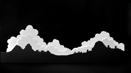 WonderMuralTa tapeta ścienna przedstawia minimalistyczny design, podkreślając stylizowaną sylwetkę gór z puszystymi chmurami kontrastującymi z czarnym tłem. H...