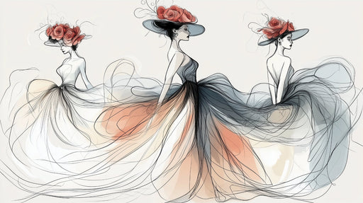 Wyświetl pełne szczegółyTapeta elegancki motyw | Artystyczne szkice fashionistek z kwiatowymi kapeluszami