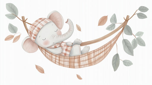 Art'loloTa Tapeta słoniowa przedstawia uroczy i delikatny motyw śpiącego słonia w hamaku. Idealna do stworzenia miękkiej i kojącej atmosfery w sypialni dzi...