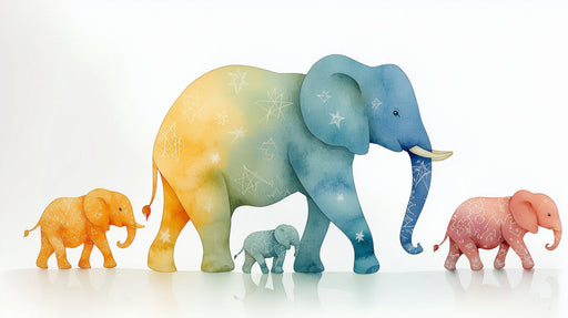 Wyświetl pełne szczegółyTapeta z nadrukiem słoni kolorowych | Ilustracje gwiazd słonia