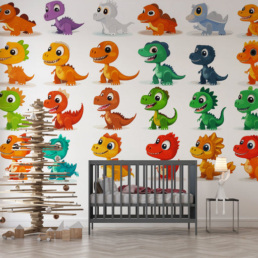 Art'loloDodaj radosny i zabawny akcent do pokoju swojego dziecka dzięki naszej tapetowej fototapetowej z dinozaurami. Wypełniony uroczymi i kolorowymi dino...