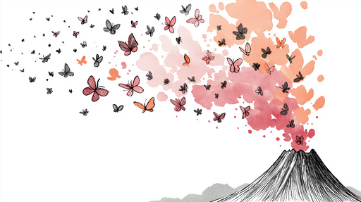 Wyświetl pełne szczegółyTapeta z wulkanem i motylami | Artystyczna erupcja z kolorowymi motylami
