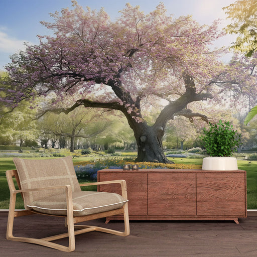 Wyświetl pełne szczegółyTapeta z kwitnącym drzewem | Bujny wiosenny pejzaż