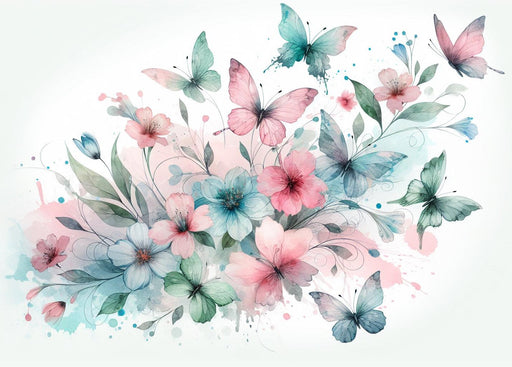 NebulaTa Tapeta z motylami to prawdziwa oda do delikatności, z motylami rozkładającymi skrzydła w powietrznej tańczącej na tle akwarelowych kwiatów. Past...