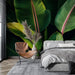 Tapeta liscie banana | Bujne zielone liscie z akcentami zóltego