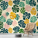 Tapeta ta ożywiona prezentuje liście Monstery w odważnej palecie kolorów, w tym odcienie zieleni, żółci i różu. Liście, ułożone na jasnym beżowym tle, tworzą tropikalny i egzotyczny wzór, idealny do dodania odrobinę natury do wnętrza.