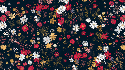 Wyświetl pełne szczegółyTapeta kwiaty | Małe czerwone białe żółte kwiaty na ciemnym tle