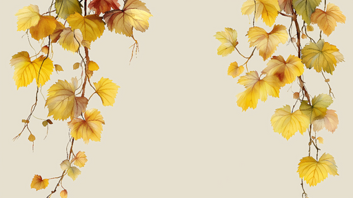 Wyświetl pełne szczegółyTapeta złote liście | Elegancki winorośl w żółtych i złotych tonacjach na jasnym tle