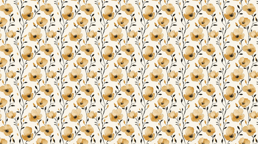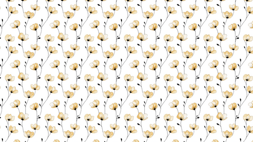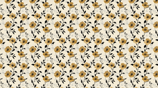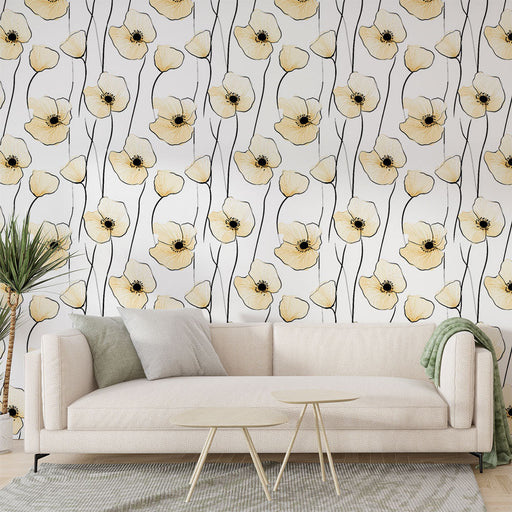 WonderMuralTa tapeta podkreśla delikatny wzór kwiatowy, gdzie żółte kwiaty wyróżniają się na kremowym tle, tworząc ciepłą i przytulną atmosferę. Czarne ilustr...