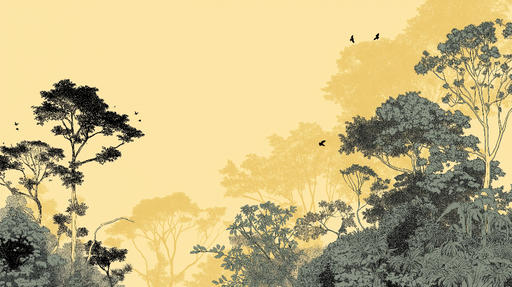 WonderMuralTa tapeta oferuje piękny wzór dżungli z szczegółowymi sylwetkami drzew, tworząc ciepłą i kojącą atmosferę. Delikatne żółte tło wnosi odrobinę świat...